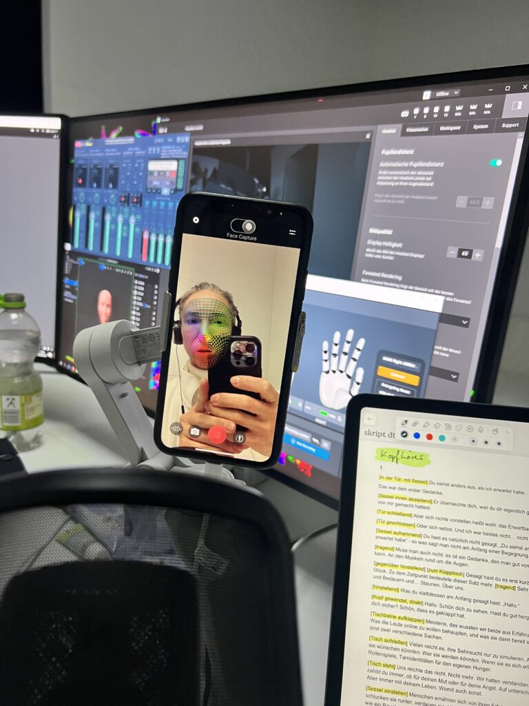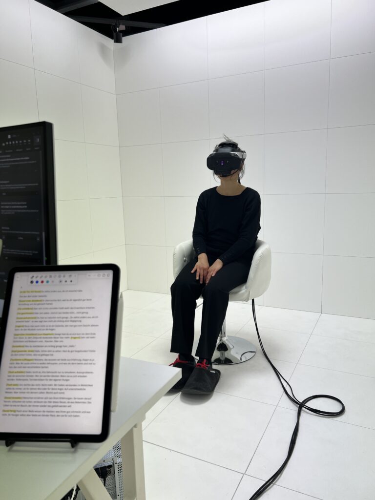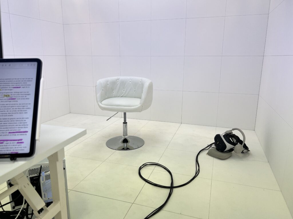 Spring 2025 performing + dramaturgic advice for Mixed Reality performance „New Flesh“ by internil/Arne Vogelgesang at Deutsches Theater Berlin ( March 31st – April 7th, 2025 ) + Volkstheater Wien (April 14 – 20, 2025 ) ( Reviews 1,2,3 )
